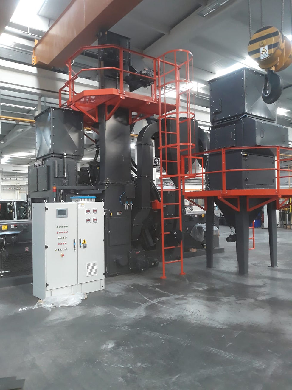Çelik hasırlı kumlama makinesi, düz, ince duvarlı ve hassas metal parçaların yüzey temizliği, pürüzlendirme ve yüzey hazırlığı işlemleri için tasarlanmış, yüksek verimlilik sunan otomatik bir yüzey işleme ekipmanıdır. Bu makine, döküm, otomotiv, havacılık ve metal işleme sektörlerinde; alüminyum ve demir alaşımlı parçaların üzerindeki pas, tufal, çapak ve diğer yüzey kusurlarını etkili bir şekilde gidererek, parçaların boyama, kaplama veya montaj öncesi istenilen yüzey kalitesine ulaşmasını sağlar.